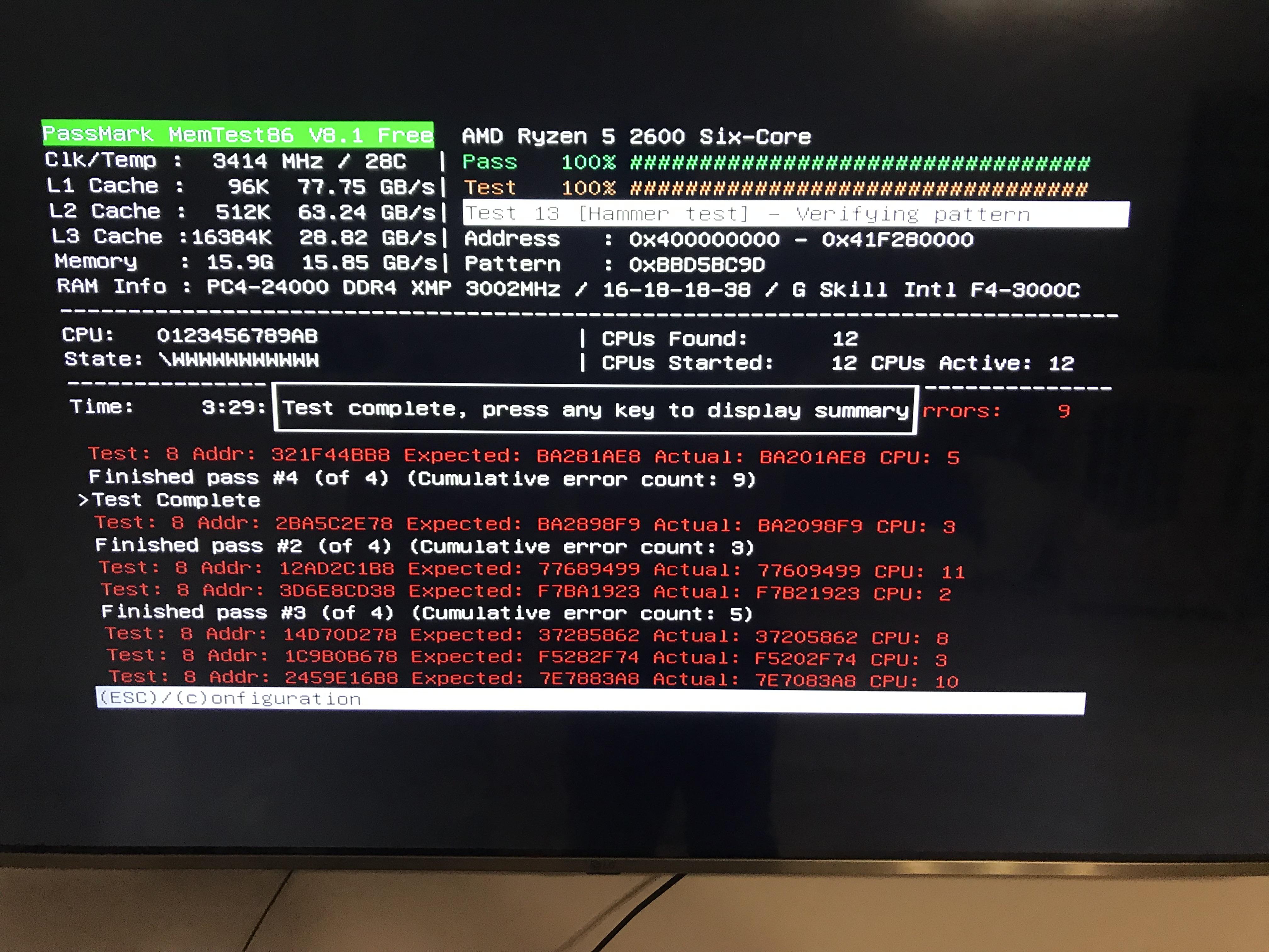 i teraz aktualizacja problemu okazało się że lexar był włożony w pola banków pamięci 1 od procka przerwa i następny zostały przełożone od strony prawej do lewej i błędy znikneły w programach aida i occt ale dzisiaj jadę do tego gościa zobaczyć na miejscu bo wszystkie bolączki ustąpiły ale chłopak mówi że jak gra w call of duty to ma takie mikro przycięcia tak jak by frame time mu spadał.