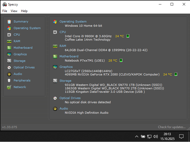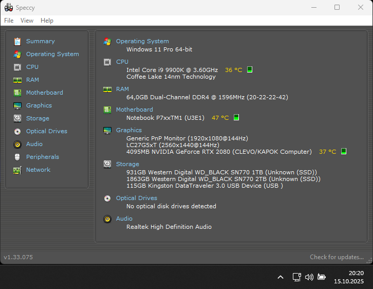 Laptop DTR : CLEVO P775TM1 / HYPERBOOK X77 Płyta Główna : P7XXTM1 (U3E1) Matryca : 17,3” FULL HD IPS 144hz Chipset : Intel : Z370 Socket : 1151 Procesor : Intel Core i9-9900K | 3,6 GHz – 5,0 GHz | (8 rdzeni i 16 wątków) Karta Graficzna : Nvidia RTX 2080 8GB Dysk : . NVMe PCIe M.2 1TB WD Black SN770 | SPEED : Gen3x4 (System) NVMe PCIe M.2 2TB WD Black SN770 | SPEED : Gen3x4 (Reszta) Pamięć RAM : Kingston HyperX DDR4 3200 CL20 64GB (4x16GB) Monitor : Samsung 27" QHD 144hz Fabryczne polerowany heatsink cpu/gpu, rok temu nałożony PTM 7950 , zrobiony UV CPU oraz dołączona podkładka chłodząca llano v13 więc nie występują problemu z thermal throttlingiem . Nie mniej po kilku aktualizacjach z rzędu zauważyłem znaczne wzrosty temperatur na windows 11 i znaczną różnicę w temperaturach pomiędzy CPU/GPU a PCB gdzie jest 10-15'c więcej co nigdy wcześniej się nie zdarzało. Dlatego rozważam coś pozbawionego windows defendera i windows update i innych śmieci w tle Windows 10 czy 11 .. obojętne - im mniej problematyczny tym lepiej.
