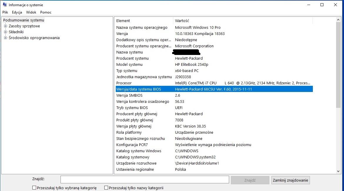 Po zaktualizowaniu BIOSu ponownie brak jest opcji Secure Boot, pewnie ten HP Elitebook 2540p tak był zaprojektowany. W zainstalowanym Windows 10 Pro nie było żadnych komunikatów po tej aktualizacji o ponowną aktywację. W starym XP miałem kiedyś taki alarm po zmianie karty grafiki. -