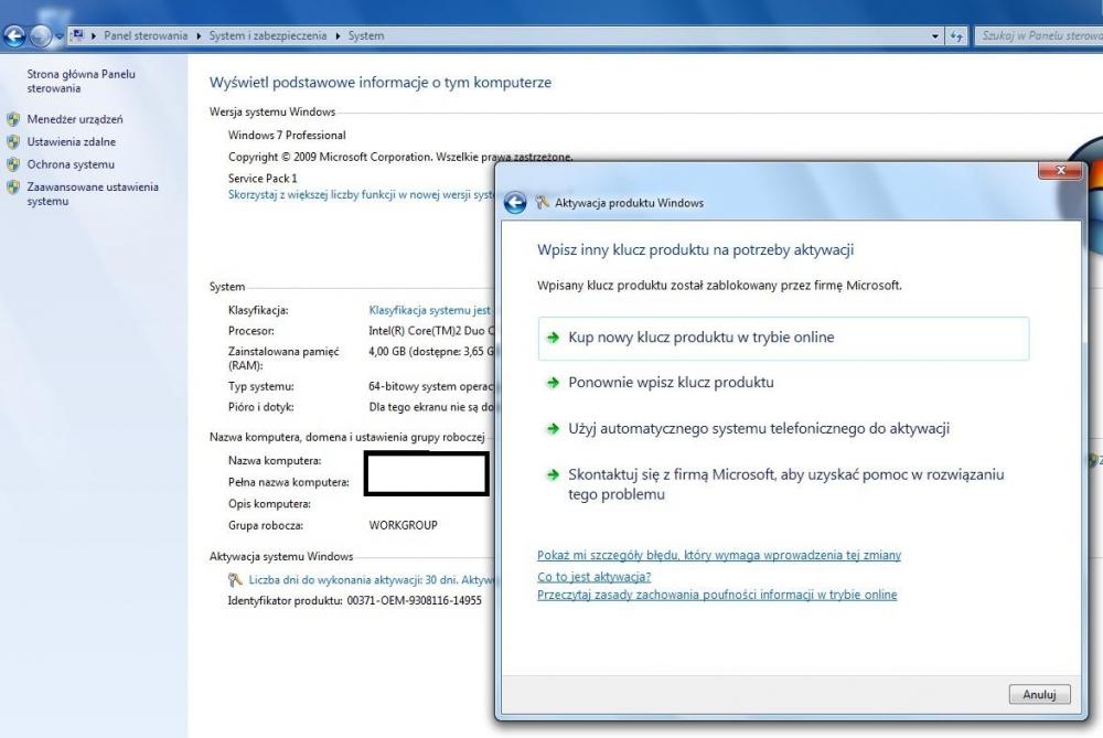 Był potrzebny mi komp lub lapek z fizycznymi (nie wirtualnymi) portami COM, na szybko kupiłem za grosze blaszaka Fujitsu Esprimo C5731 E-Star5. Pierwsze co sprawdziłem przy zakupie, to czy jest jakakolwiek naklejka z serialem (lub bez w Windows 8 i wyższej) któregoś z Windows. Tu były aż dwie! Pierwsza: Windows 7 Pro OA FUJITSU <Product Key: TT96Rxxx...> i druga: Windows 10 Home For Refurb PCS <nazwa firmy> <Product Key: CR9KB...> Po zakupie od razu wyczyściłem dysk GPartedem, nie sprawdzając czy zainstalowany dotychczas Windows jest legalny, i zainstalowałem Windows 7 Pro 64-bit, i tu niestety przy aktywacji klucza z naklejki wyskakuje komunikat o zablokowaniu przez MS wpisywanego klucza z naklejki. Dlaczego jest ta niemiła niespodzianka, czy spotkał się już ktoś z taką odmową? Czy aby aktywować jakiegokolwiek Windowsa trzeba kupić licencję?