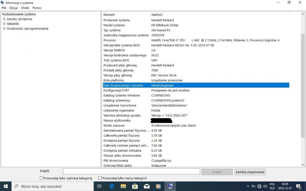 Po zaktualizowaniu Windows 7 Pro 64-bit do Windows 10 Pro 64-bit na tym lapku już wiem, że Secure Boot nie jest tutaj zaimplementowane. -