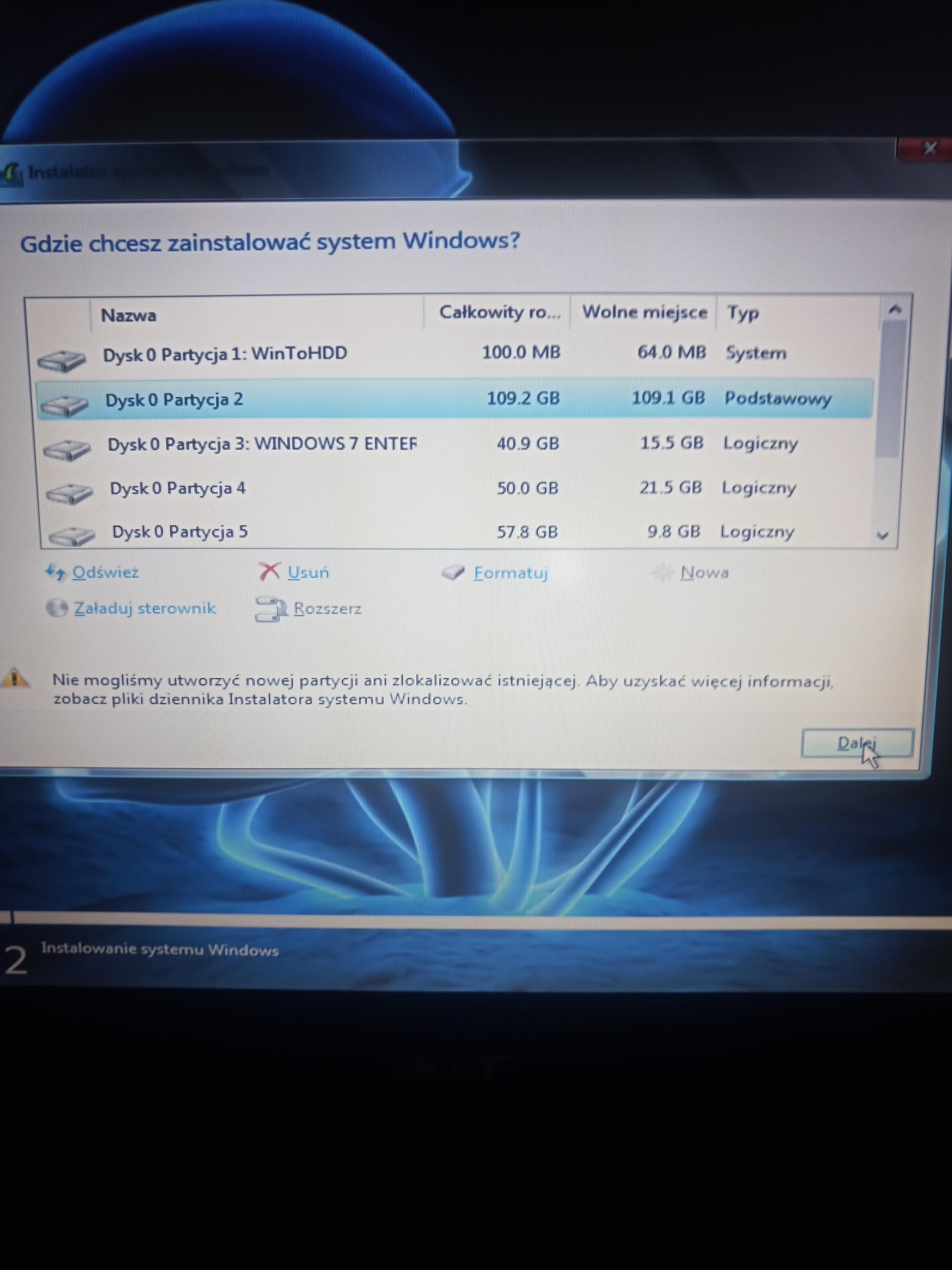 nie moge na zadnej z tych partycji zainstalowac sysytemu czy to win 7 8 10 11 dysk ma pojemnosc 500gb usuniecie wszystkich partycji nic nie daje obraz systemu sciagniety z uup win 25290 potem iso wrzucone do win 11 boot and upgrade fix kit z forum mdl uzywalem opcji 2 i potem robilem pendrive programem yumi do tej pory wszystko dzialalo a teraz po tym komunikacie nie moge przejsc dalej